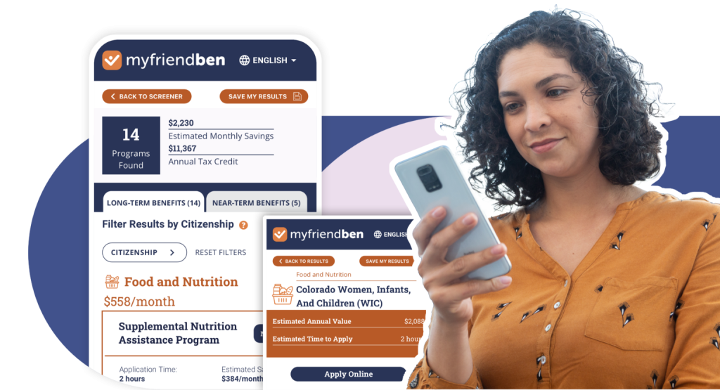 MyFriendBen builds industry-leading technology to make securing public benefits easy and dignified. In just six minutes, get access to support and funds. Fill out the screener for your state because BEN has your back.